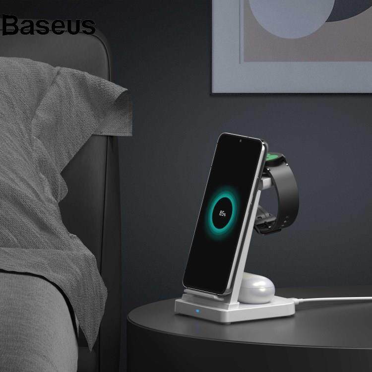 Baseus B-12D 3-in-1 Wireless Charger Desktop Qi Fast Charging Stand Dock for iPhone iWatch AirPods Pro