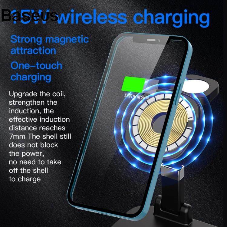 Baseus YF-T8 3-in-1 15W Magnetic Wireless Charger 15W Cordless Charger Portable Charging Stand with Indicator Light