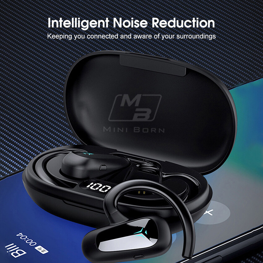 Mini Born Wireless Bluetooth 5.2 Earphone Bone Conduction Headphones TWS Digital Display Bluetooth Headset Non-In-Ear Earbuds Waterproof Earphones for Running Bicycling Hiking Driving Workou