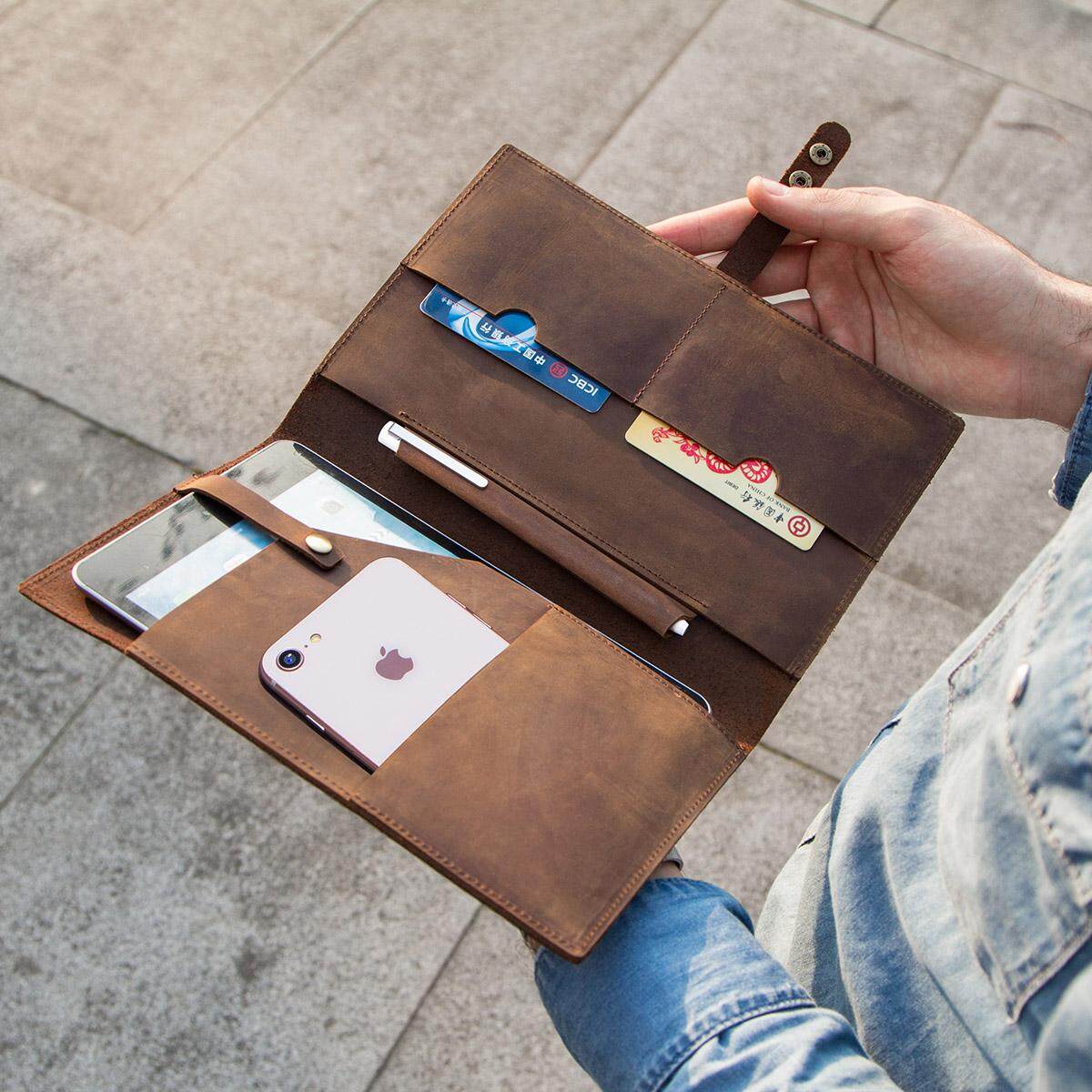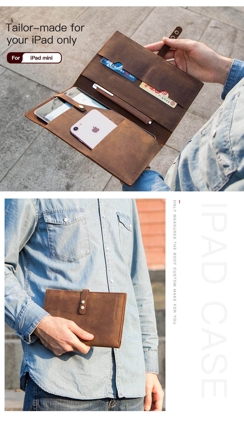 CONTACTS FAMILY Tablet Sleeve Pouch Bag For iPad mini Cowhide Leather Case Cover For iPad mini 7.9 8.3 inch 2021With Card Holder Notebook Pocket