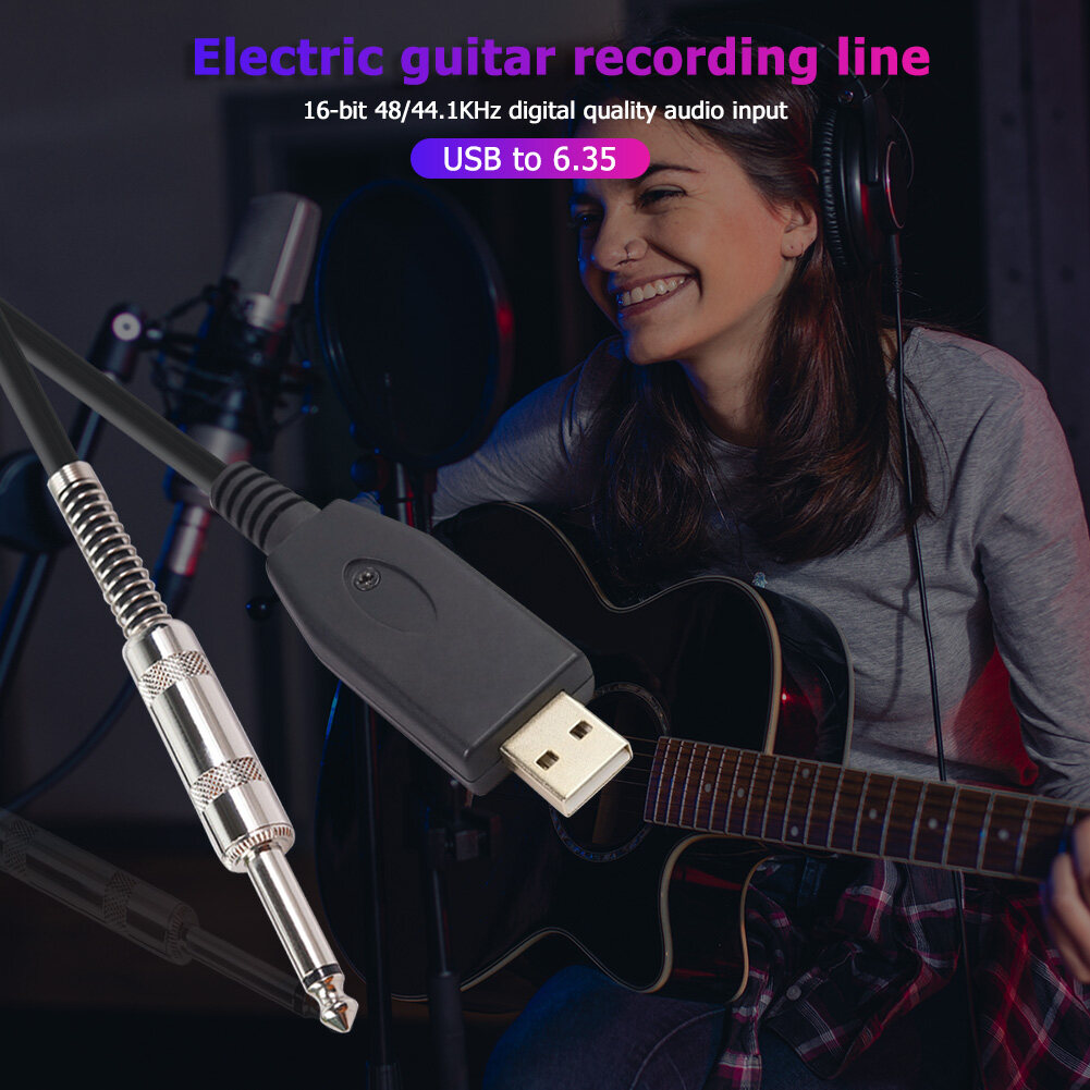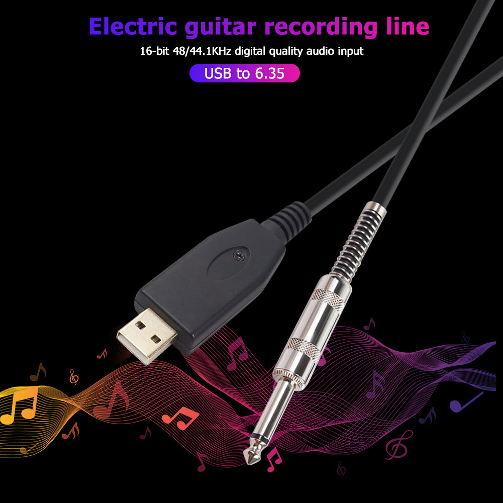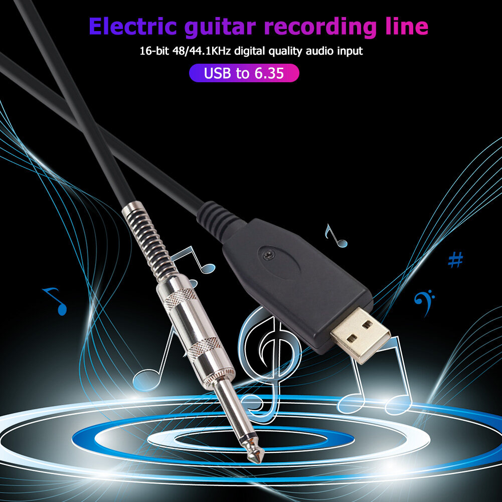 This USB guitar cable has a sound card and is compatible with a computer without additional drivers.