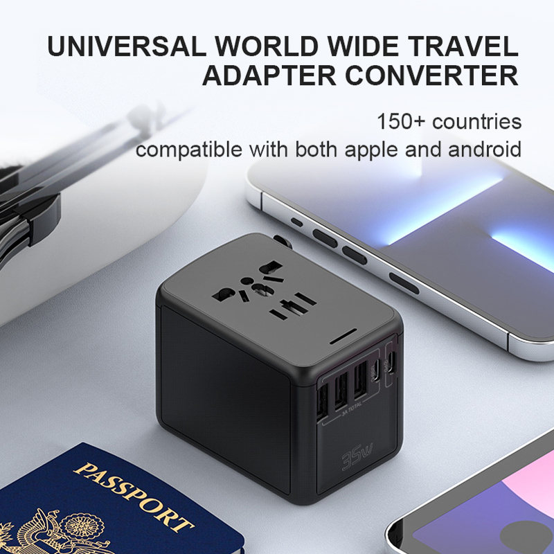 Universal Travel Plug Adapter Charger PD35W Fast Charging 3 USB PORT + 2 TYPE C PORT - US/UK/AU/EU Port Wall Charger