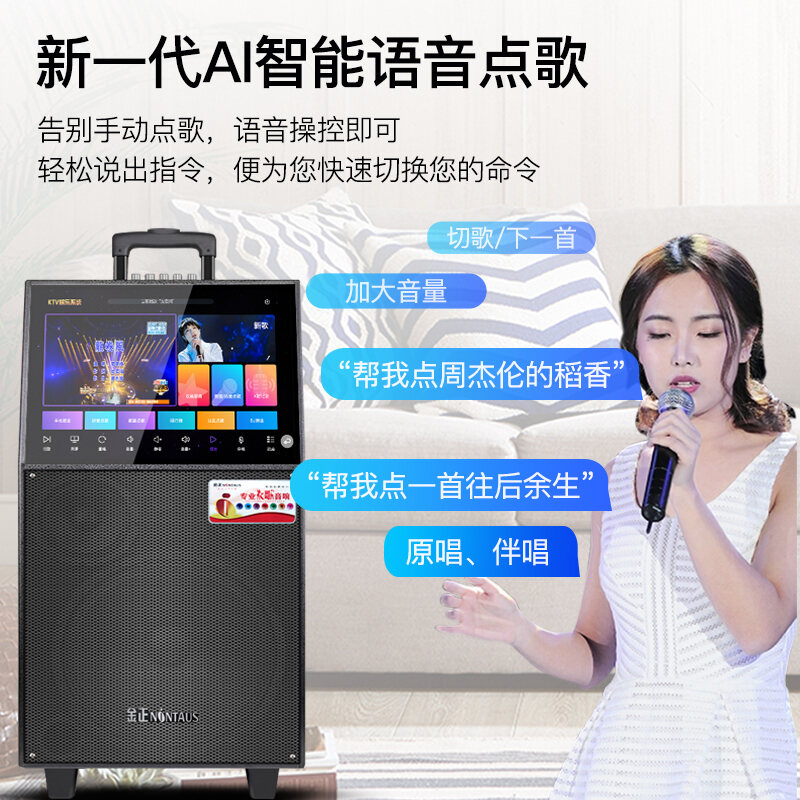 Jinzheng Square Dance Audio with Display Screen Mobile Outdoor Karaoke Speaker Karaoke Wireless Microphone All-in-One Machine