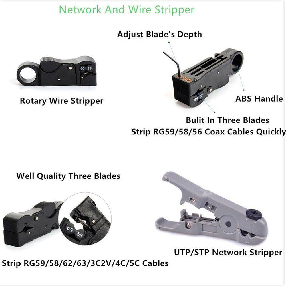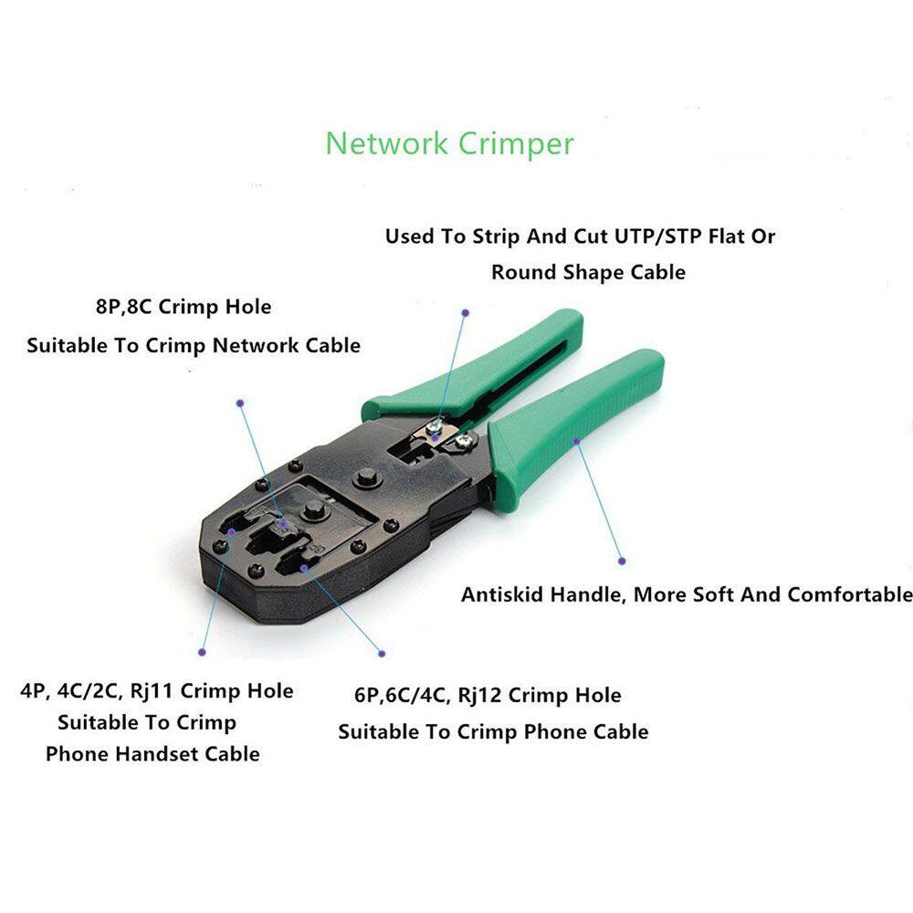 Scope of application: RJ11/RJ45 conventional and through hole connector (through hole crystal EZ crystal head), can strip UTP/STP circle pair stranded wire, flat telephone line.