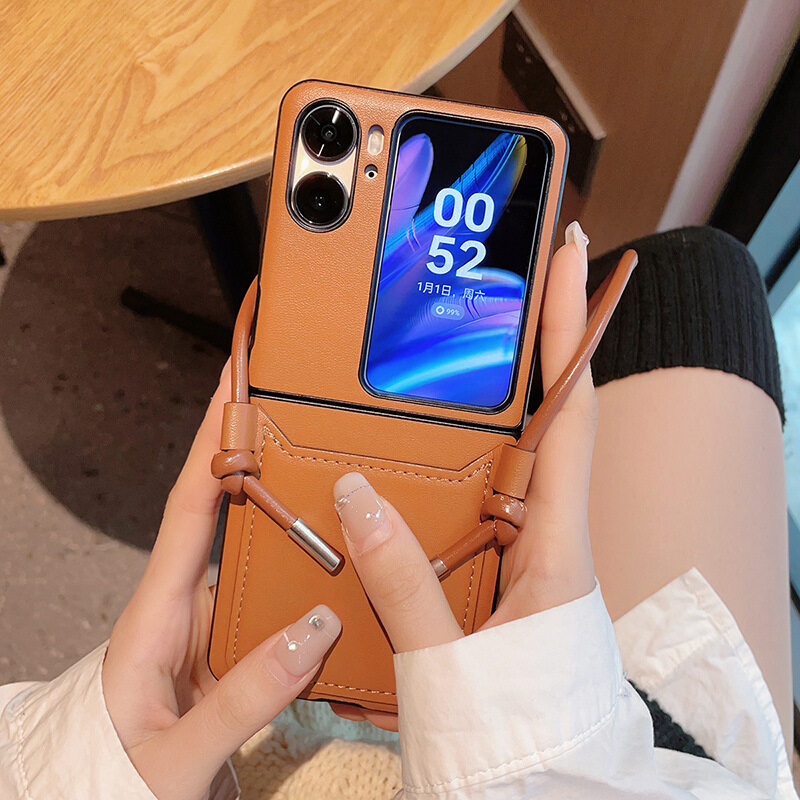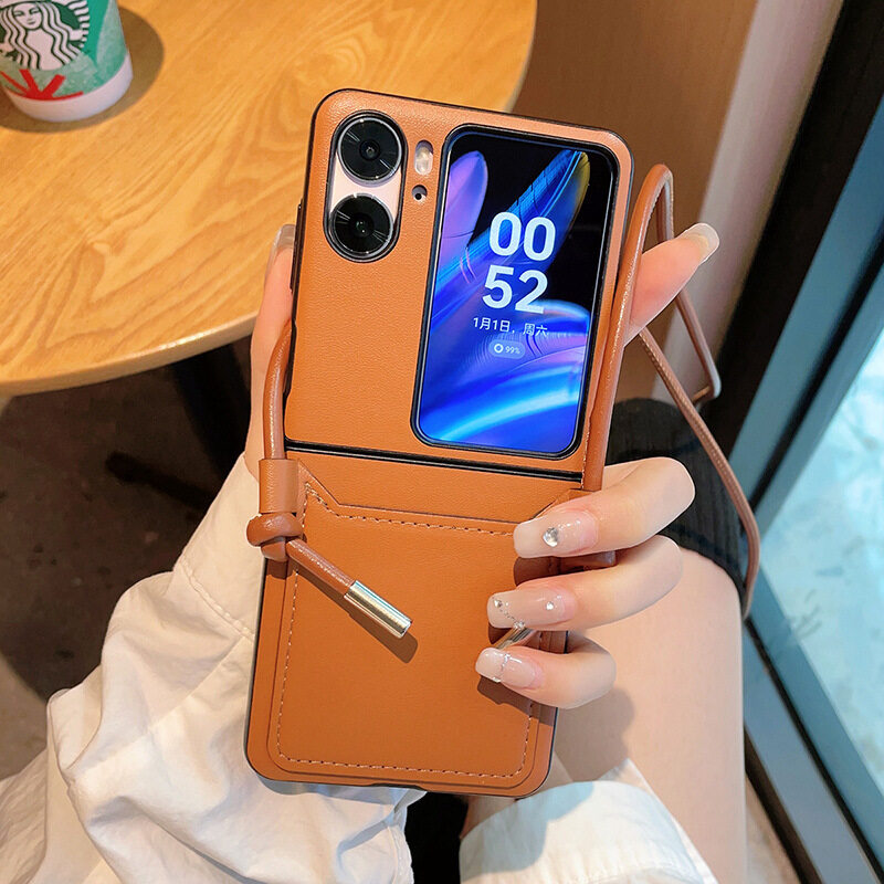 HOCE Luxury Diagonal Strap Phone Case For OPPO Find N2 Flip Cases With Lanyard Shookproof Cover