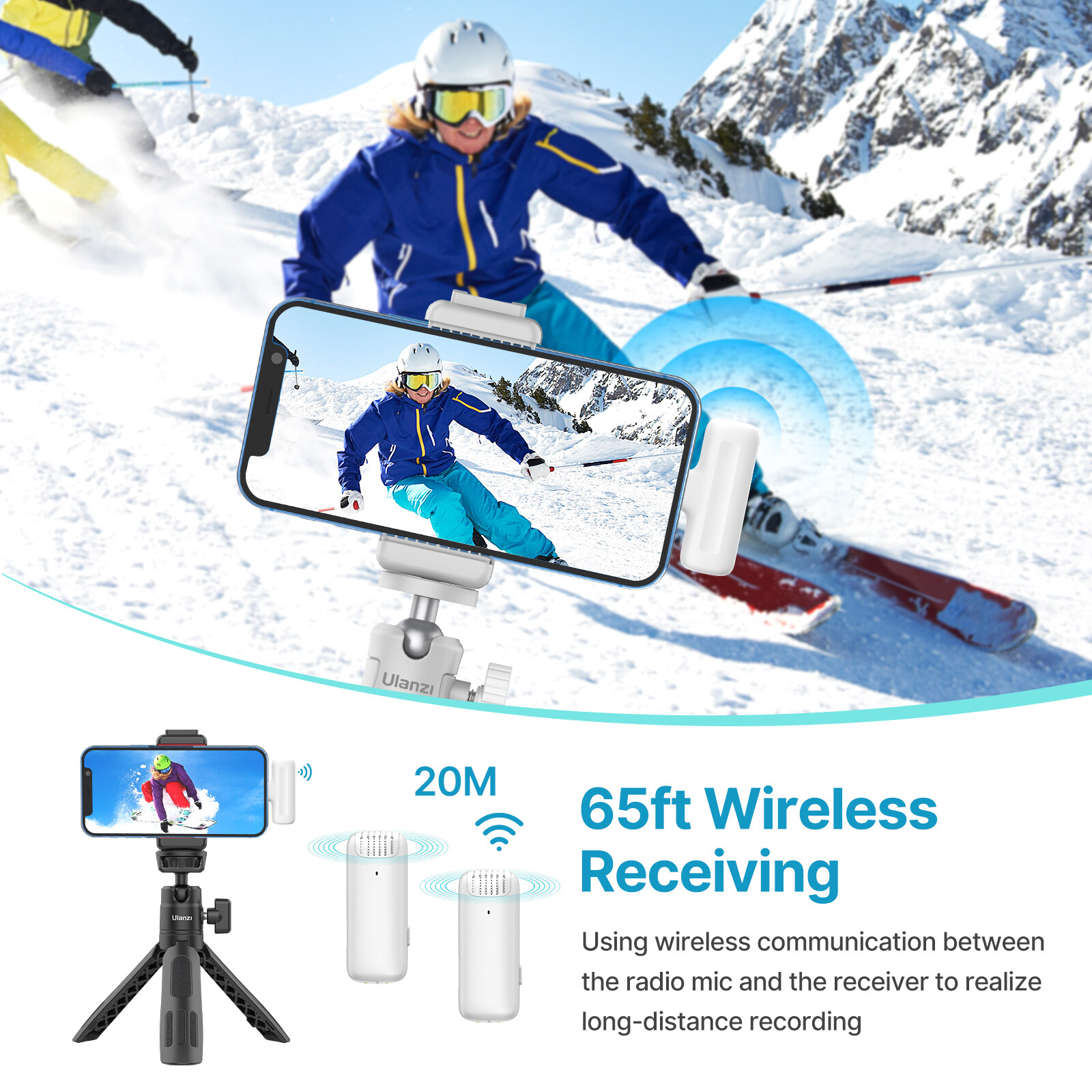 【Long Distance and Clear Transmission】20M effective transmission range helps you to realize long-distance recording; built-in intelligent de-noise module, which can effectively filter out the noise to improve sound quality.