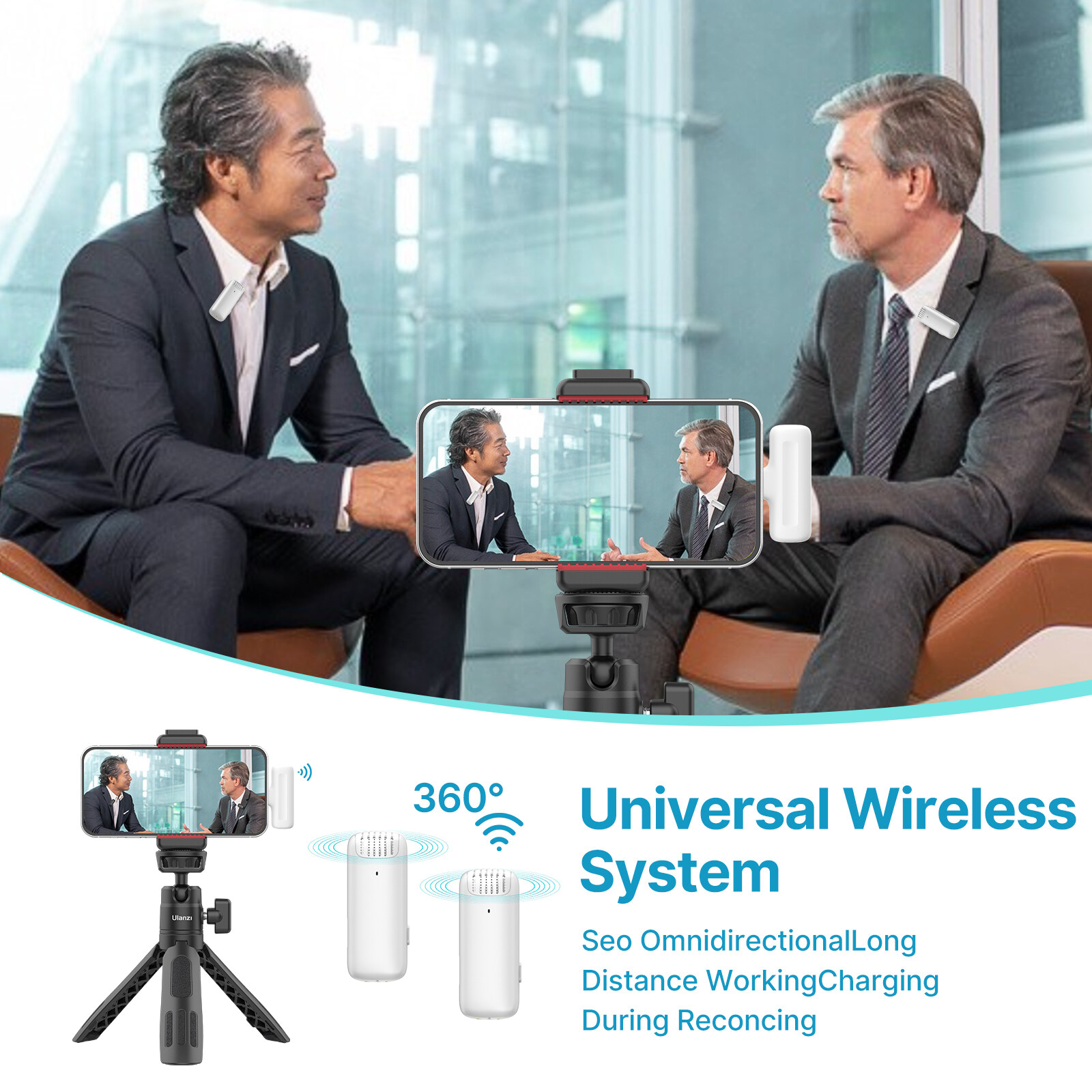 Including 1 receivers & 2 microphone transmitters, supports dual microphone simultaneous recording, plug-and-play, no APP needed, very suitable for phone vlog, live streaming, interview, online chatting, etc.