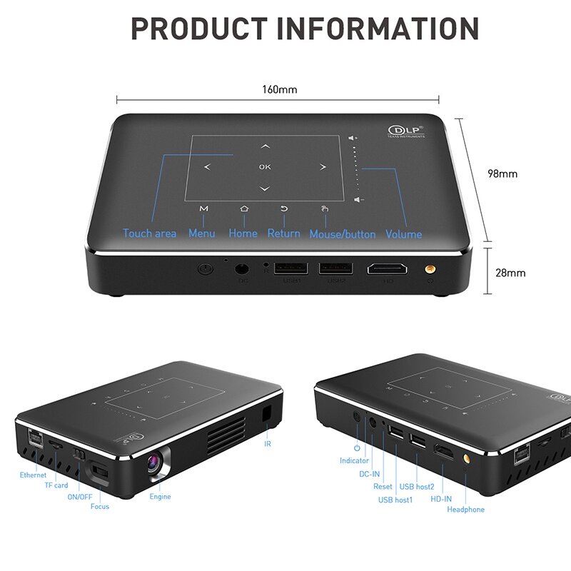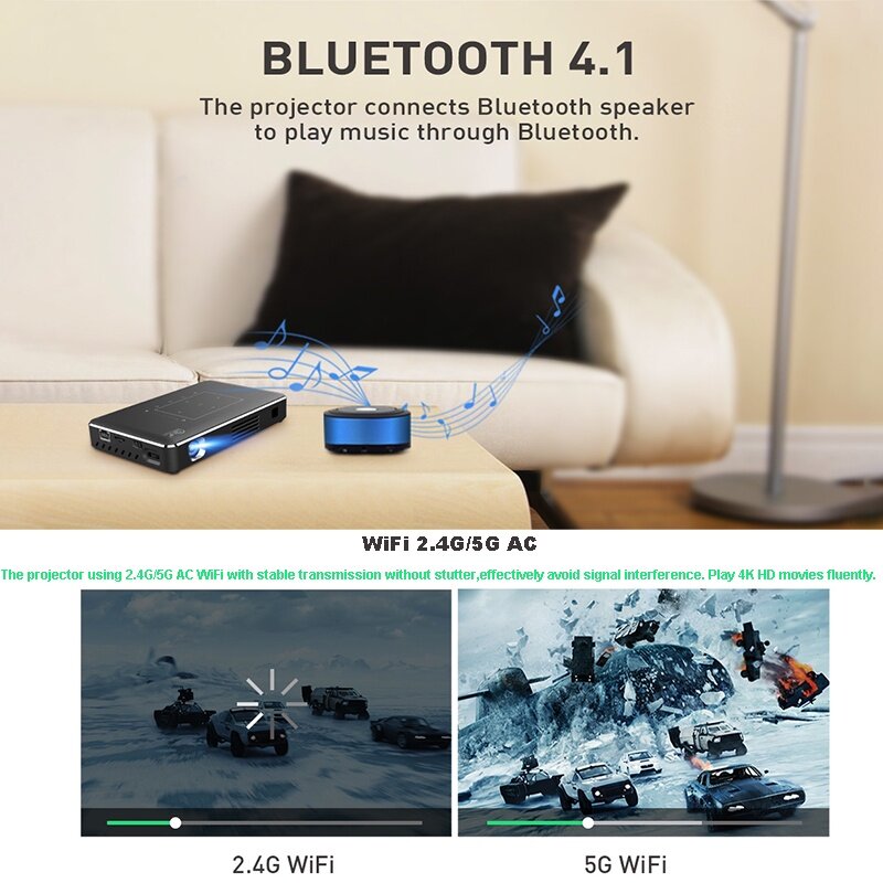 Rafale P10 II Smart Android 9.0 DLP 3D Projector WiFi Bluetooth 4.0 Portable Movie Home Cinema Support 4K Airplay