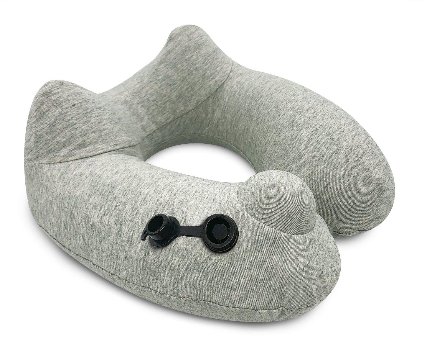 Travelmall 3D Inflatable Neck Pillow with Patented Pump and Hood (Grey)