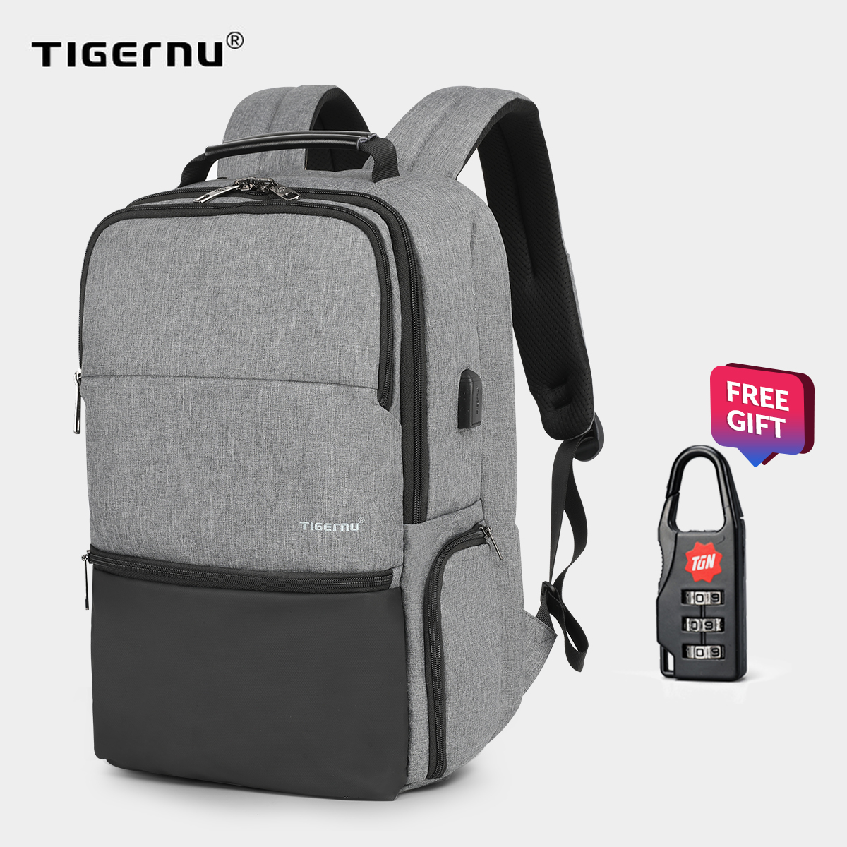 【Free shipping】Tigernu 15.6 RFID Anti theft Water resistant With USB Charging Port Laptop bag travel backpack for men