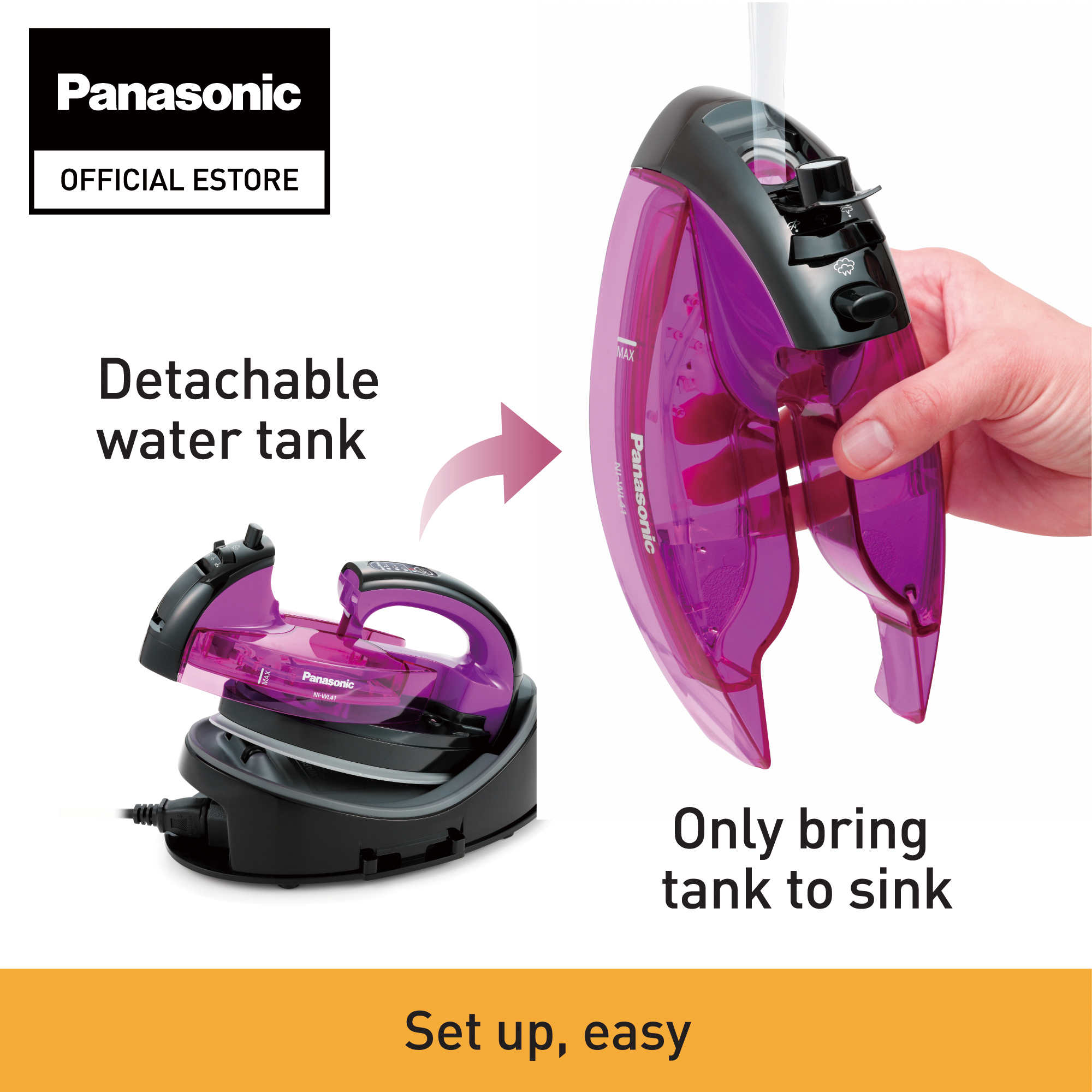 You don’t need to bring the whole iron to your sink because the water tank is detachable. It is easy to pour in and remove water.