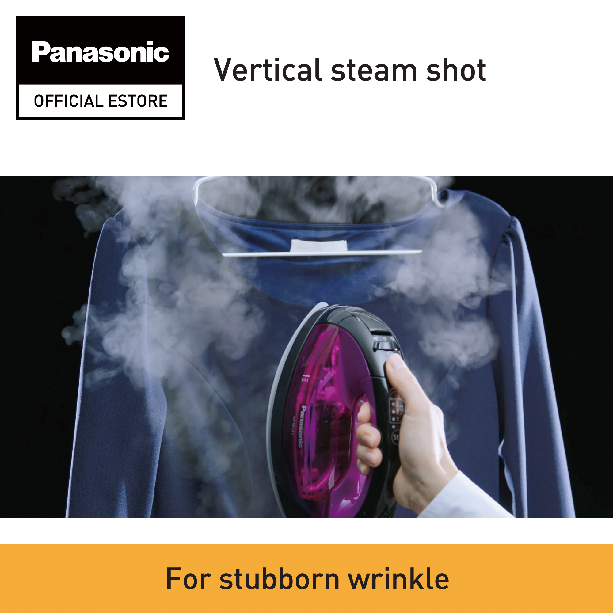 Just push the button and a blast of steam blows off wrinkles. In combination with the cordless design and vertical shot, you can easily handle clothes on a hanger.