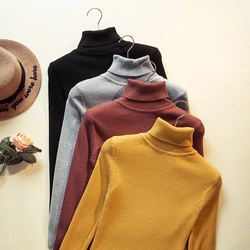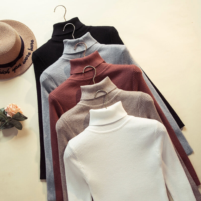 Autumn and Winter Han Fan New All-Match Slim-Fit Stretch Turtleneck Sweater Women's Long-Sleeved Slimming Bottoming Top Solid Color Sweater