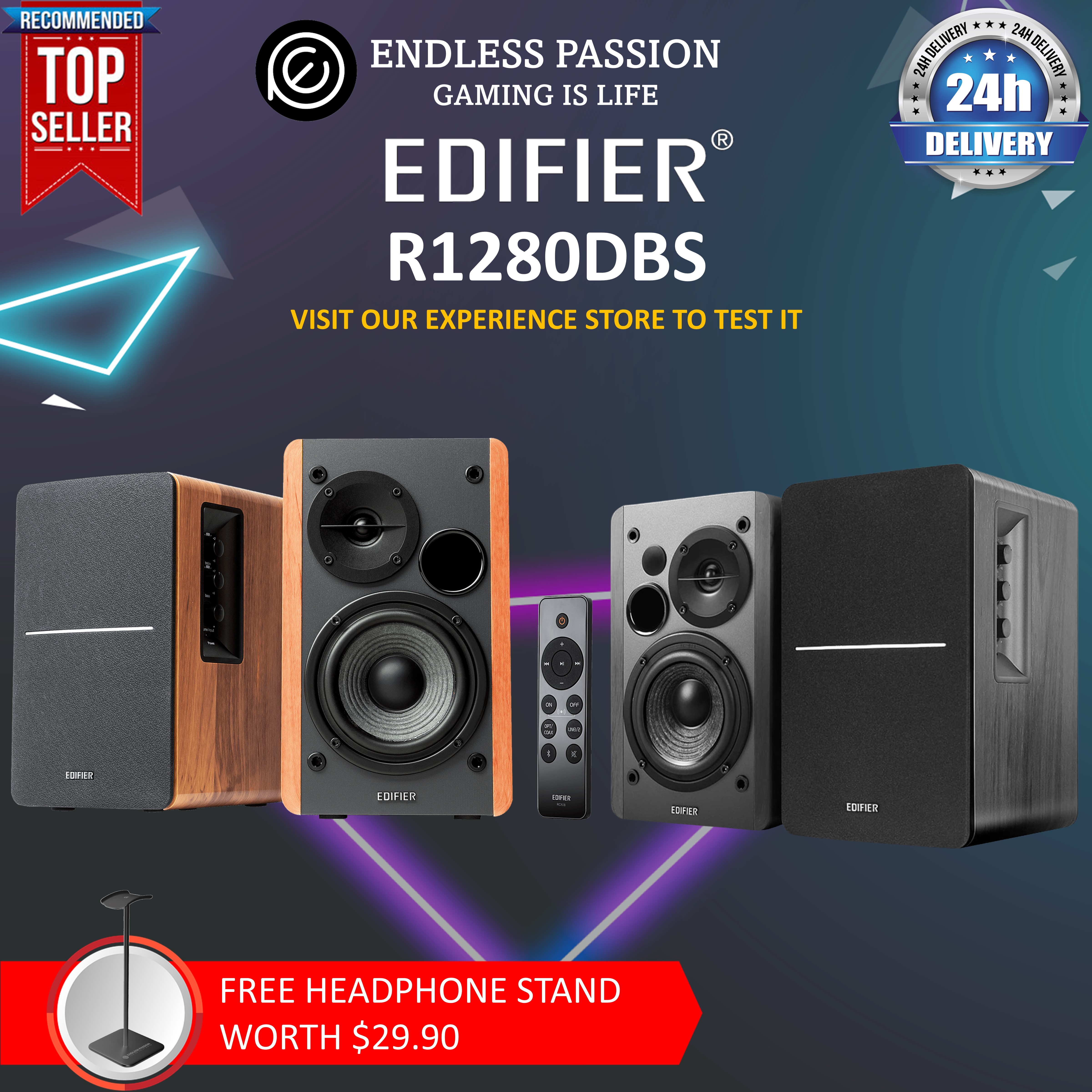 Edifier R1280DBS Active Bluetooth Bookshelf Speakers - Optical Input - 2.0 Wireless Studio Monitor Speaker - 42W RMS with Subwoofer Line Out