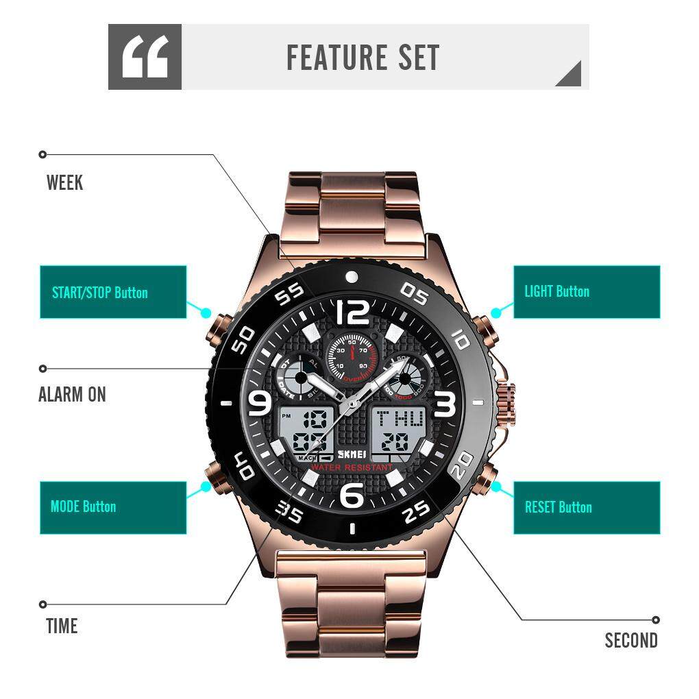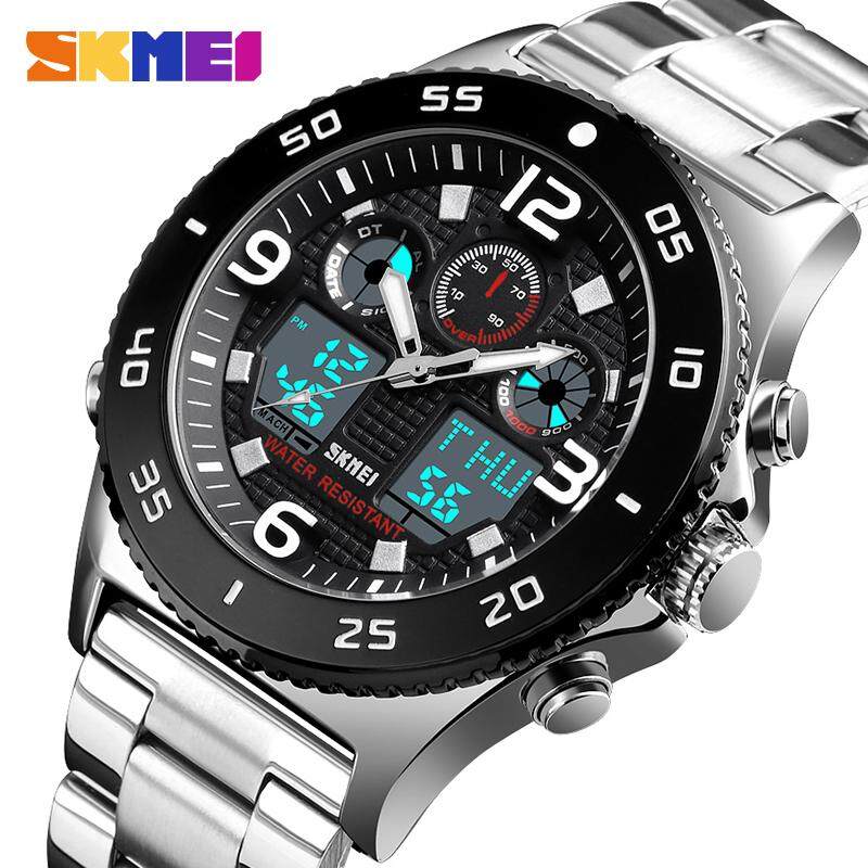 SKMEI Sports Fahsion Watches Stainless Steel Stopwatch Dual Display Waterproof Digital Watch For Man Men 1538B