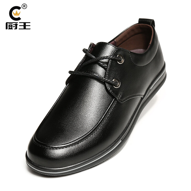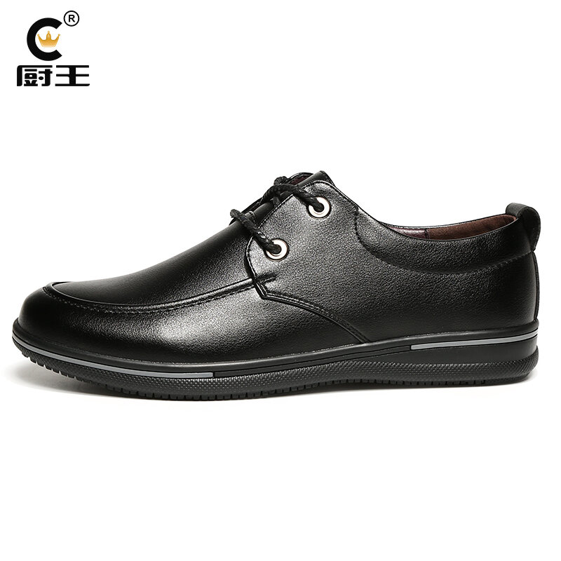 Kitchen King Chef Special Leather Shoes Kitchen Non-Slip Waterproof Oil-Proof Work Shoes Black Soft Leather Low Top Work Shoes New