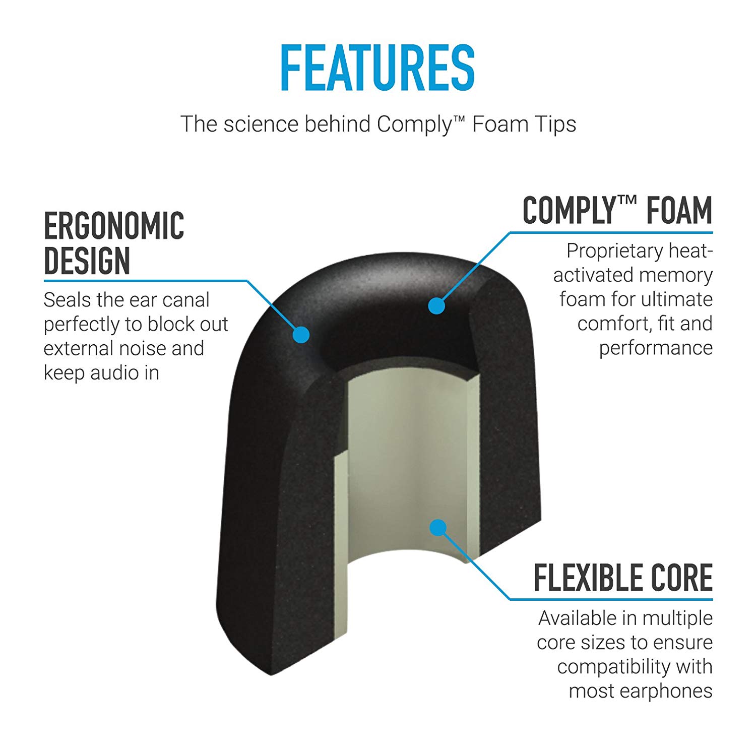 Comply Isolation T-100 Memory Foam Earphone Tips for Etymotic, Klipsch, Shure, Westone & More (Medium,3 pairs)