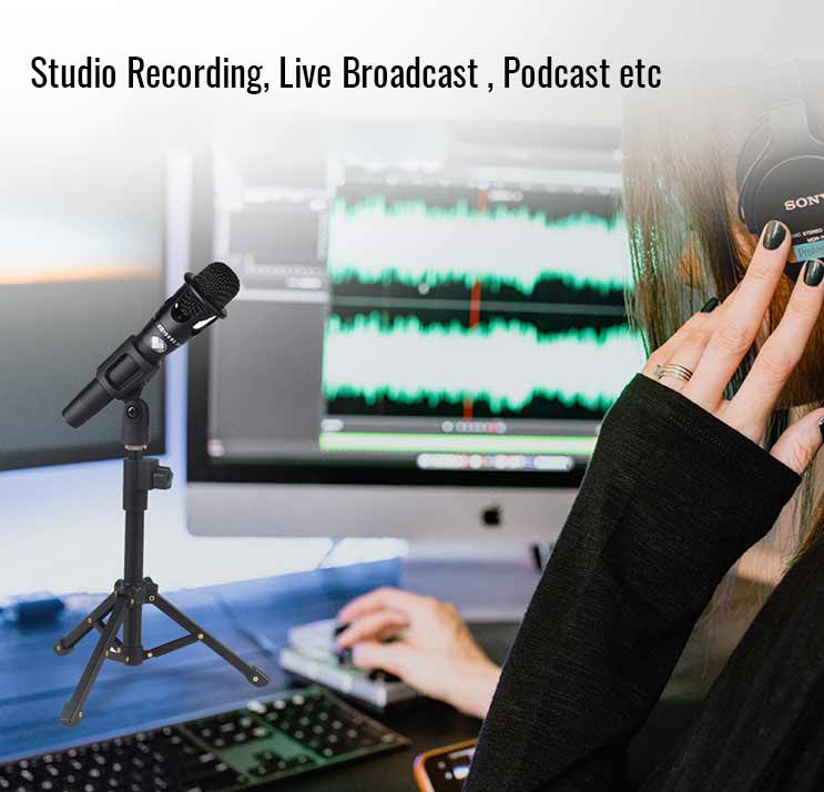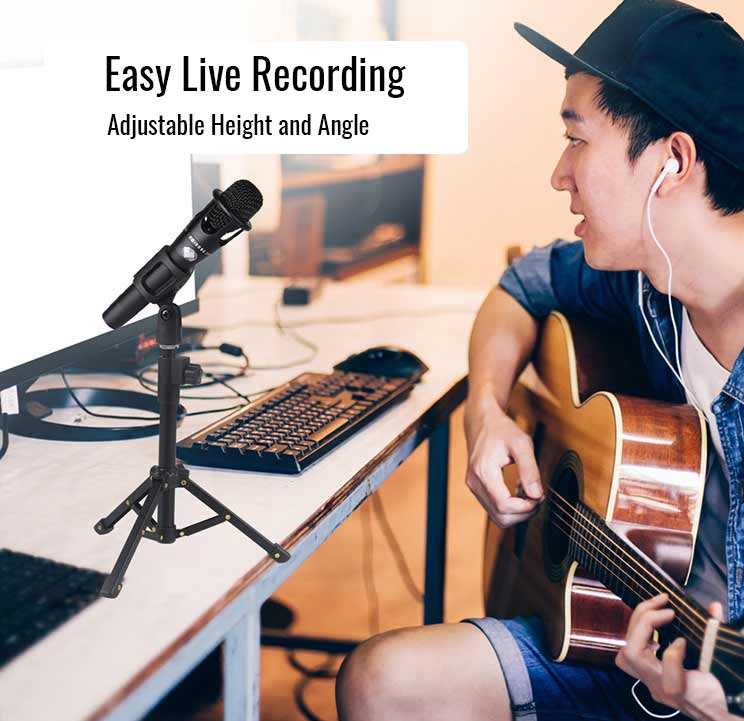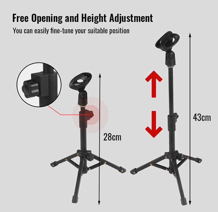 eDSLRs Microphone Foldable Desktop Table Mic Stand Extendable Tripod Stand Holder with Mic Clip for Meetings Live Zoom Podcast Gaming