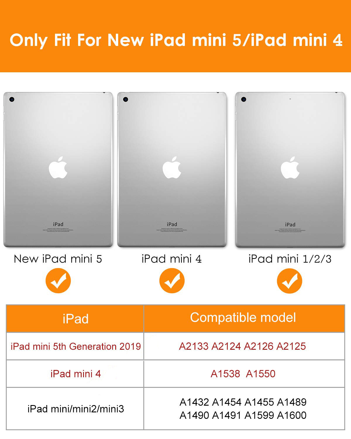 Brand Name : GOOJODOQ Type : Folding Folio Case Application Laptop Size : 7.9"Length : 20cm Style : Fashion Width : 13.4cm Package : Yes Compatible Brand : For Apple iPad For IPad Model : iPad mini 4 Model Number : Smart Case for Apple ipad mini 4 3 2 1Model Compatibility : for iPad Mini 2 Case Material : SiliconPattern Type : SolidFeature : Drop resistanceFeature : Anti-DustFeature : WaterproofFeature : Shockproof Feature : Soft Feature 1 : Auto sleep/wake up function Feature 2 : Sturdy Stand for ipad mini 3 2 1 case : A1490/A1491/A1599/A1600/A1601/A1432/A1454/A1455/A1489 Case for ipad mini 4 Case : A1538 A1550 Case for ipad mini 2 Case : for ipad mini 2 Cover for ipad mini 3 Case : for ipad mini 3 Cover for ipad mini 1 Case : for ipad mini 1 Cover for ipad mini case : for ipad mini cover funda for ipad mini 2 : silicone soft back case 5701 5833 New !!! There are two models, Please choose the right model for your ipad ! Model 1 :for ipadMini 1 2 3: A1490/A1491/A1599/A1600/A1601/A1432/A1454/A1455/A1489 Model2 :for ipadMini 4 :A1538 A1550 Automatically wake/sleep your tablet Premium PU leather front, sturdily made with Silicone Soft-shell stand back protector. Easy access to all features and controls Tri-fold front cover with dual standing positions for movie-viewing and keyboard-typing. Sturdy full-edged design.Easy to install and remove Precise holes cutout and snug fit .Full access for connections, lines up correctly with the holes and buttons fits snugly inside for the camera Ultra slim and Good Protection, add no bulk to you device. Need more,Please Search "for ipad mini" on GOOJODOQ Store.