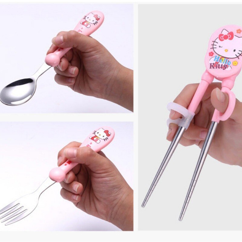 Baby Training Equipment Set Kids Learning Tableware, Stainless Steel Practice Chopsticks Fork Spoon Household Tableware
