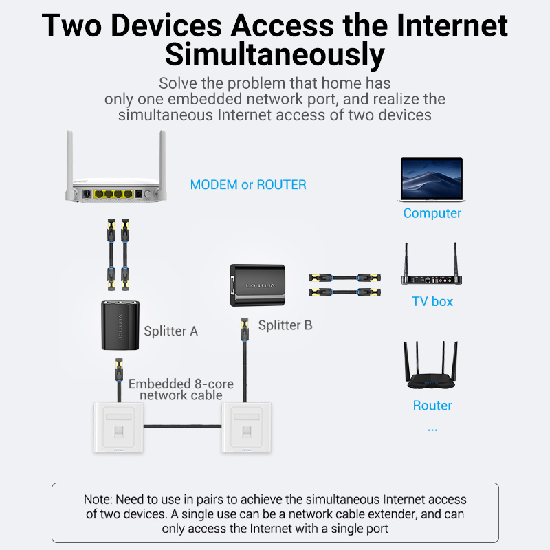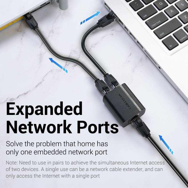 Vention RJ45 Splitter Connector Adapter 1 to 2 Ways Ethernet Splitter Coupler Contact Modular Plug Connect Laptop Ethernet Cable