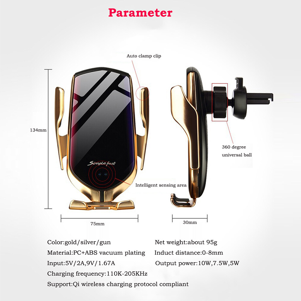 Features: IR Sensor, Automatic Clamping, Gravity Holder, Easy Mount, Fast Charging