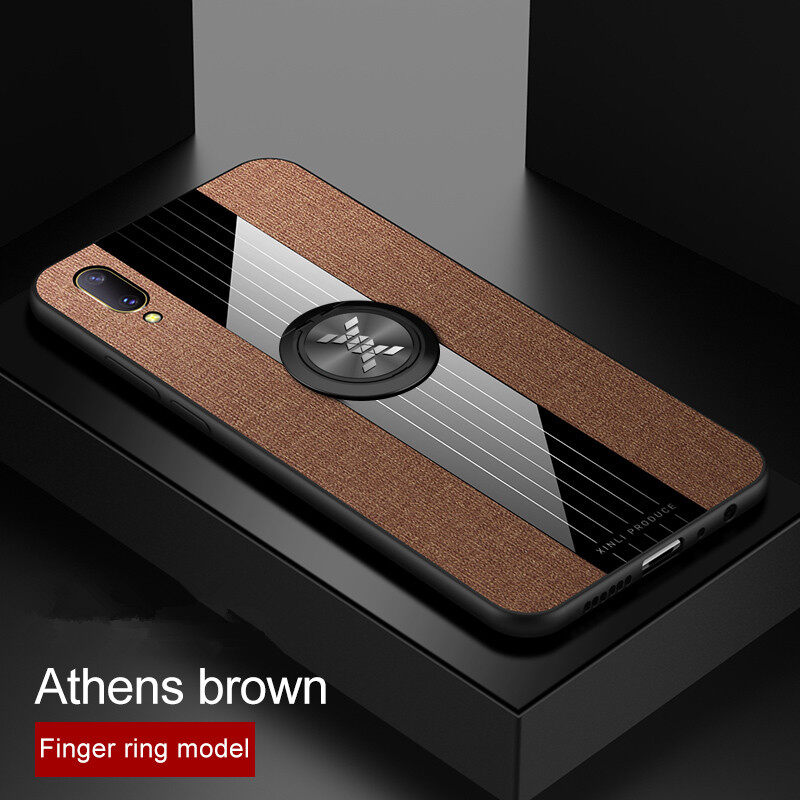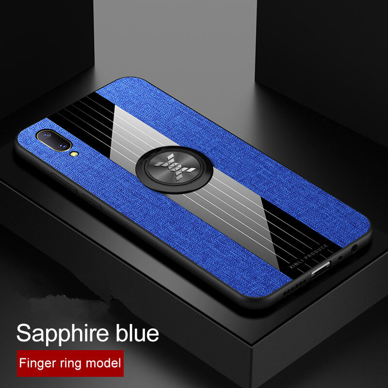 Hontinga Casing Case For VIVO V11 Pro Case Fabric Cloth Back Case With Metal Finger Ring Holder Matte Protective Hard Cover Phone Case Shockproof Cases Coque Handphone Hard Case For Boys Girls Men Wom