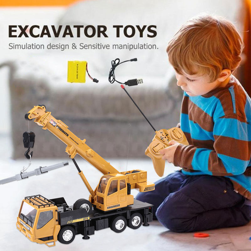 8 Channel,USB charging Remote Control Excavator RC Crawler Tractor Toy, Construction Vehicle RC Crane Truck Engineering car freight elevator Toys with Flashing Lights for children Birthday Xmas good g
