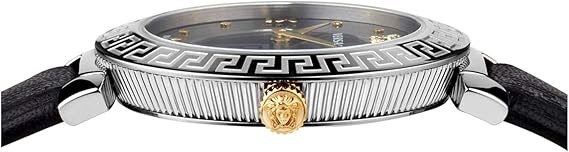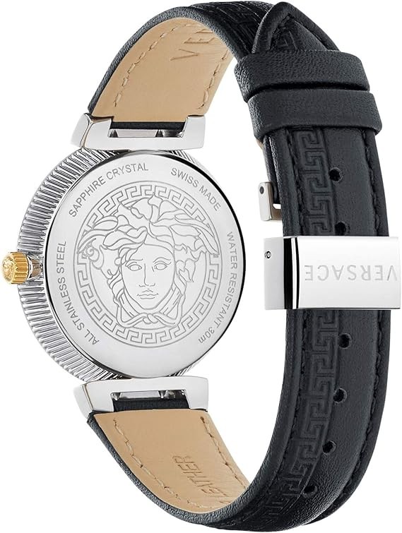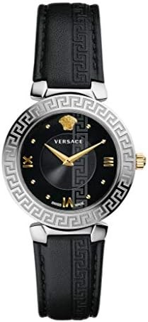 Versace Daphnis Collection Luxury Womens Watch Timepiece with a Black Strap Featuring a Stainless Steel Case and Black Dial